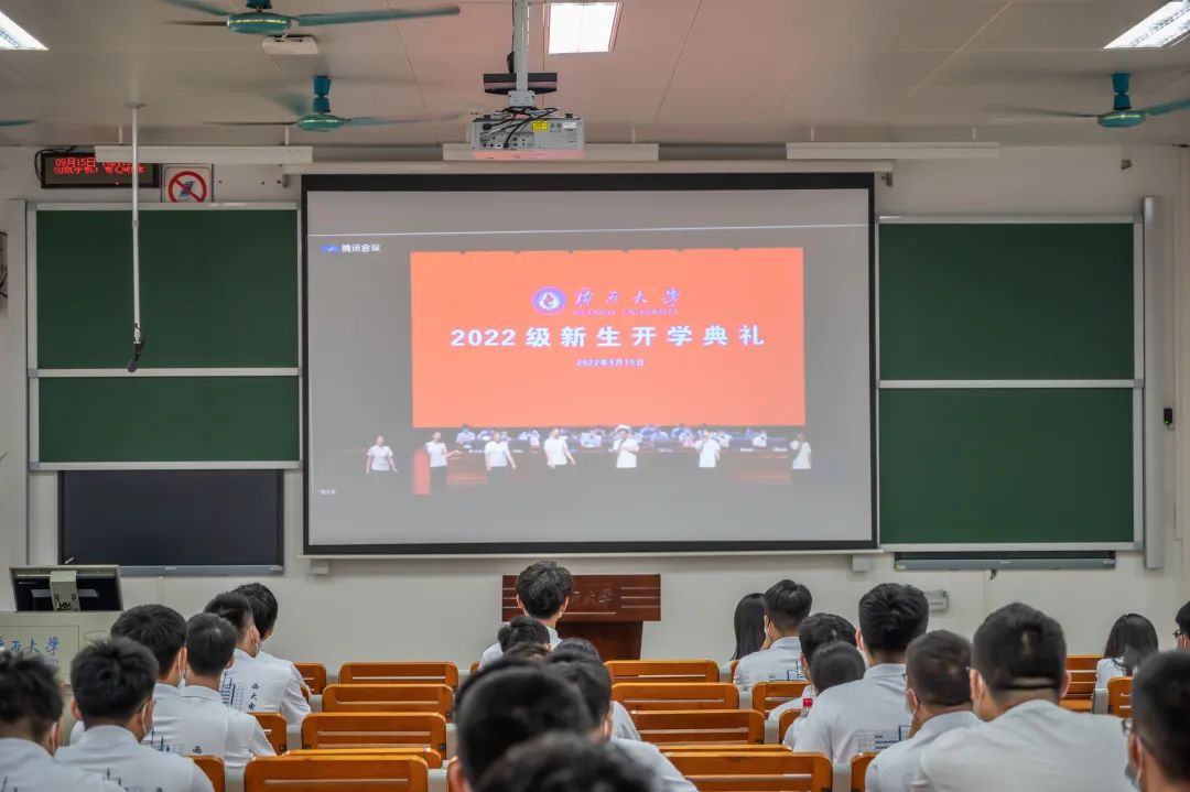 新葡的京官网党委书记梁志坚、院长双丰、党委副书记雷圆媛、副院长刘辉,新生班主任、辅导员、新生班助和2022级新生在六教分会场全程观看主会场直播。