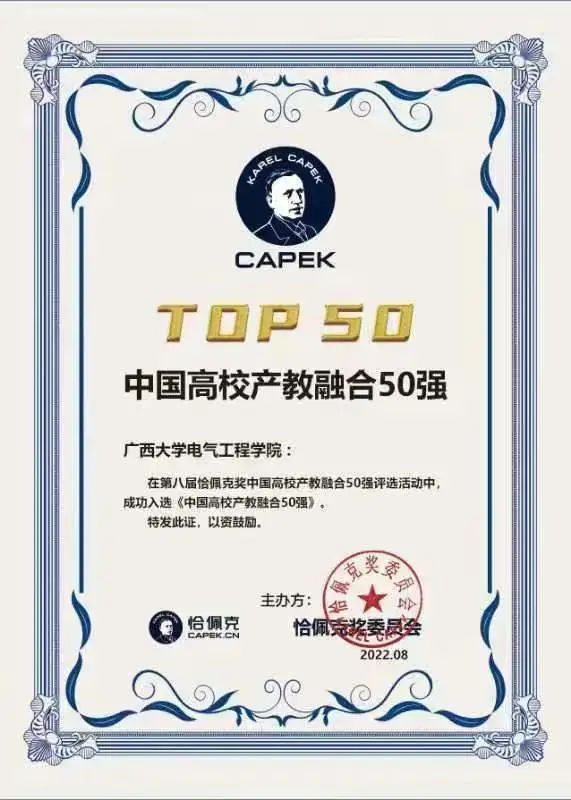 8月26日-27日,第十二届中国国际机器人高峰论坛暨第八届恰佩克颁奖仪式在安徽芜湖举行,新葡的京官网荣获恰佩克奖“中国高校产教融合50强”奖项。