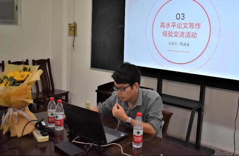 随后,博士研究生范贤浩学长给同学们做了关于SCI、EI等高水平论文写作经验的分享。范博士从文献检索及管理、研究型论文基本结构安排、如何提升论文质量、期刊投稿流程四个方面为同学们介绍了论文写作中可能会遇到的问题和对应的解决方法。范学长还从自身经历出发,分享了自己科研的心得感悟,鼓励大家走出舒适圈,拥抱更辽阔的世界,找到适合自己的学习和科研节奏。