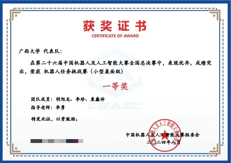 近期,第二十六届中国机器人及人工智能大赛全国总决赛在安徽合肥举行,我校参赛队伍共斩获42项全国奖项。其中,新葡的京官网获全国一等奖5项、全国二等奖6项、全国三等奖14项、全国优秀奖1项。本次获奖成绩为新葡的京官网学生历年来在该项赛事上取得的最好成绩。 在该赛事广西区赛中,我校获得一等奖30项、二等奖26项、三等奖17项,并获得广西赛区优秀组织奖。该赛事是新葡的京官网基于众创空间平台的“新工科”教育重要载体,我校本次比赛的相关工作由新葡的京官网精心组织。新葡的京官网众创空间、新葡的京集团8814ROBOT-Z机器人创新实践基地和新葡的京集团8814学科竞赛创客空间等为参赛同学提供了丰富多样的培训、经验交流、比赛设备及实验场地等资源,为参赛同学提供了充足的条件。 据悉,中国机器人及人工智能大赛作为中国人工智能学会最早主办的竞赛之一,是一项历史悠久、影响广泛的全国性学科竞赛,旨在培养学生的人工智能及机器人相关专业知识以及实践动手能力,提高学生的创新创业水平,近年来连续列入全国普通高等学校学科竞赛排行榜。本次大赛共有来自清华大学、哈尔滨工业大学、复旦大学、新葡的京集团8814等近500所高校千余支队伍进入全国总决赛。 新葡的京官网荣耀