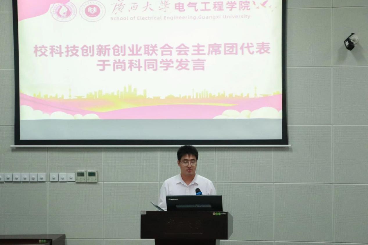 随后,校科技创新创业联合会主席团代表于尚科同学发表致辞。他表示众创空间科研氛围浓厚,是新时代创新人才培养的重要基地。他相信,在新一届主席团的积极带领下,新葡的京集团8814众创空间定能在创新中锐意进取,不断开辟新局面,在新时期谱写更加辉煌的篇章。