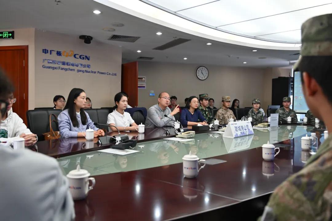 参观结束后,实践团来到了中广核广西防城港核电有限公司红树林大厦1510会议室,与入职该公司的4位毕业生校友吕康、梁永强、卓义雄、莫增叶面对面交流。座谈会上,李道洋副书记简要介绍座谈会的背景和目的,希望借此搭建在校生与毕业生校友沟通的桥梁,助力在校生更加明确职业发展目标,并为之不懈奋斗。