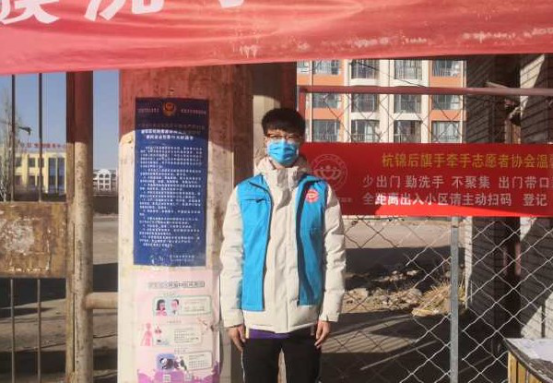 电气199班张晧阳的父母都是共产党员,他的父亲从大年初二就冲到了抗疫一线。所谓“上阵父子兵”,2月3日,晧阳也跟随父母的步伐,主动报名加入社区情防控志愿者队伍,争当防疫“守门员”,义务值班。零下几十度的内蒙古,寒风凌冽,他们相互鼓励,热情不减。每天坚持仔细核查进出小区人员,对一些未佩戴口罩的人员耐心劝导,将食物徒步送到各值班点。